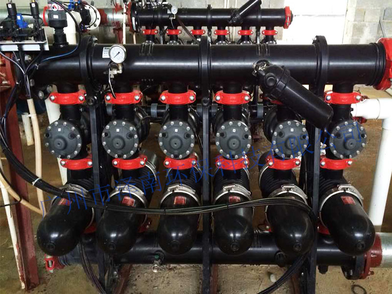 过滤器的过滤头和身是由增强聚酰胺塑料成形制造,防腐耐磨,可承受工作压力1Mpa。过滤叠片材质为聚丙烯塑料,密封为EPDM,进出水及排水管路为碳钢喷涂环氧树脂,不锈钢材质等,这一切使得整套过滤器系统能抵挡恶劣的工作环境。